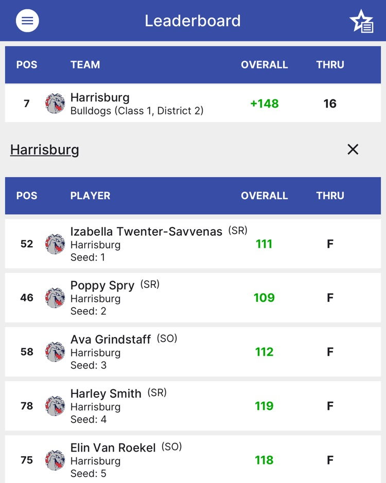 The girls competed hard in tough conditions the past two days at the Class 1 State Golf Tournament at Tanglewood GC in Fulton. They represented Harrisburg with pride this season and at the state tournament.