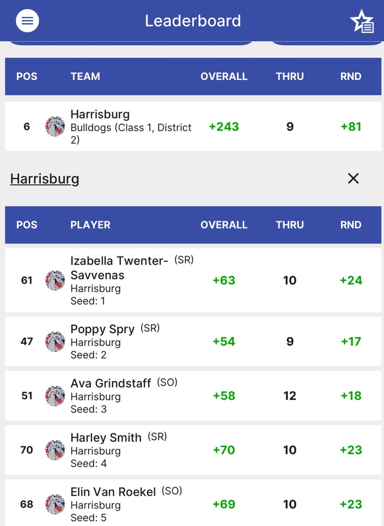Good luck to the Harrisburg Bulldog girls golf team today at the Class 1 State Golf Tournament!!! #BulldawgPride