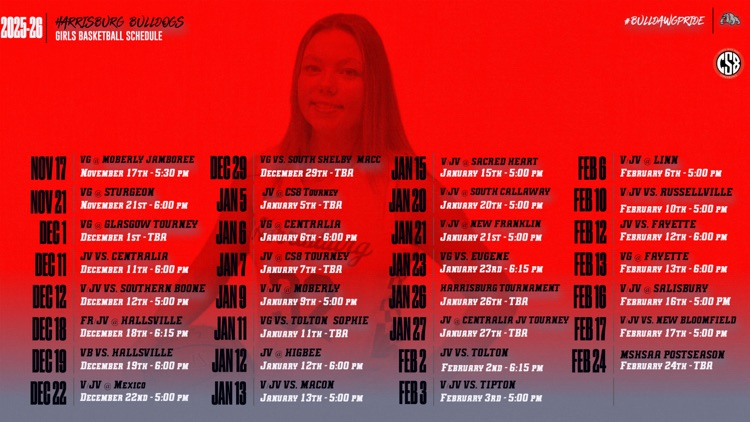 Here is the 2025 Harrisburg Bulldogs HS girls basketball schedule. #BulldawgPride