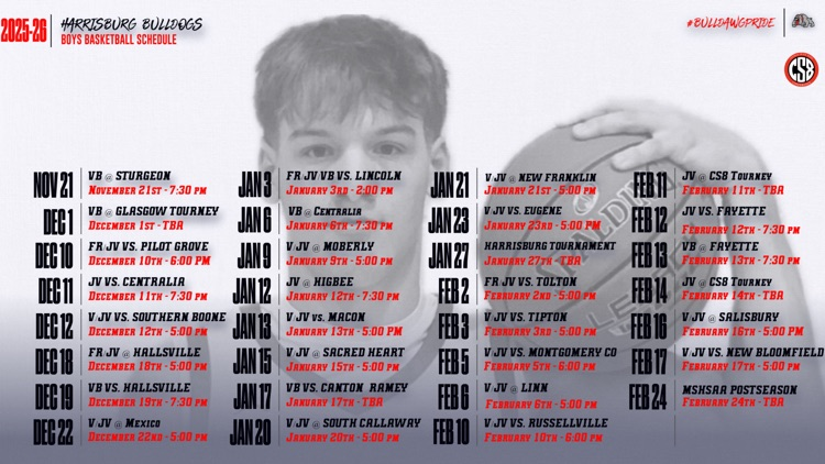 Here is the 2025 Harrisburg Bulldogs HS boys basketball schedule. #BulldawgPride