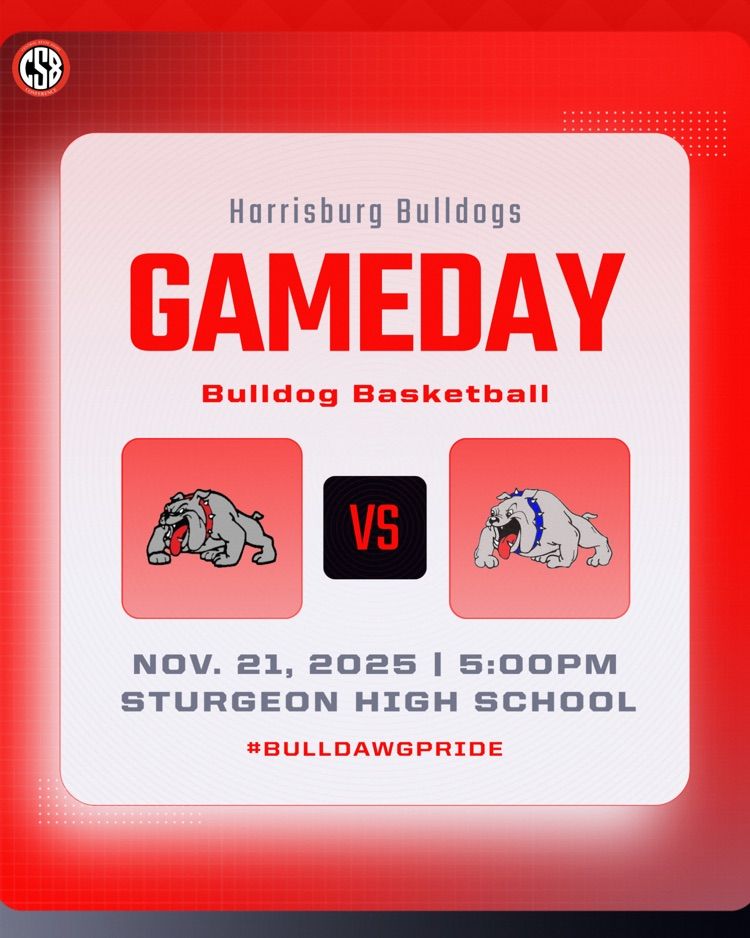 Good morning Bulldogs!!! It is GAMEDAY!!! Harrisburg opens the 2025-26 season on the road at Sturgeon tonight with JV boys leading it off at 5:00 pm. #BulldawgPride