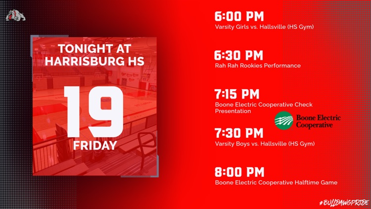 GAMEDAY!!! Good luck to the Harrisburg Bulldogs who host the Hallsville Indians tonight at 7:30 pm on Coach Combs Court!! #BulldawgPride