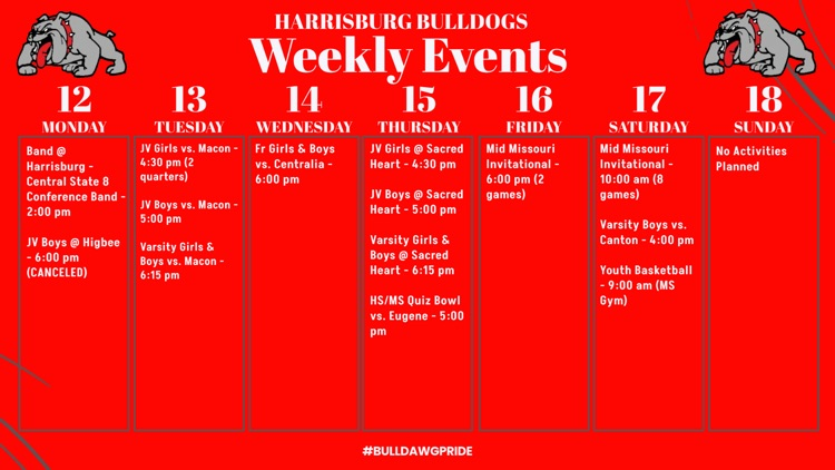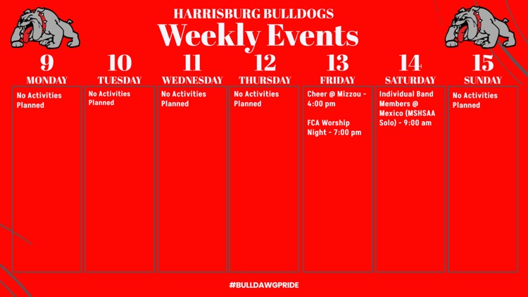 Check out the weekly events for our Bulldogs!!! #BulldawgPride