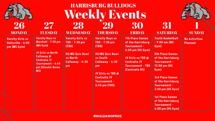 Check out the weekly events for our Harrisburg Bulldogs #BulldawgPride