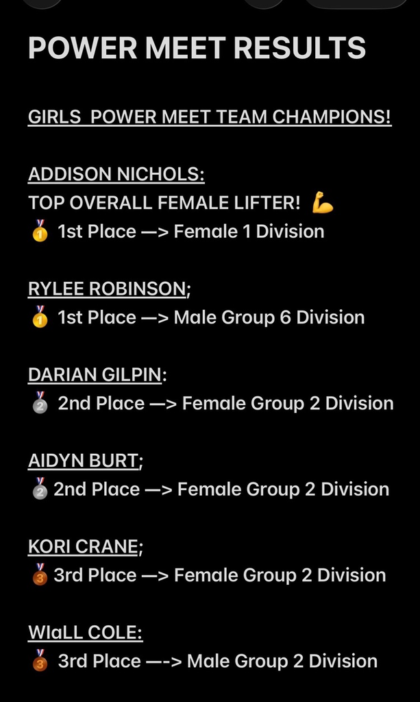 Six Harrisburg athletes earned medals (Top 3 in Power Rating in their weight class)