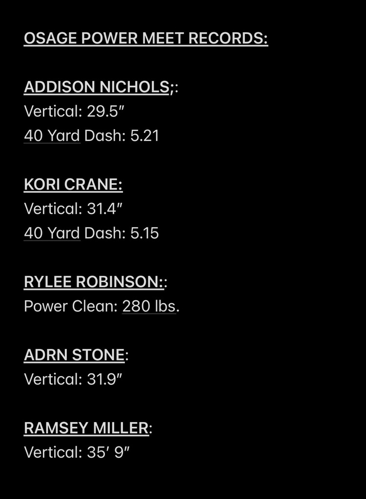 The Bulldogs broke 7 Osage Power Meet Records (most by any school).