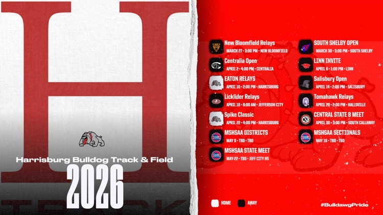 Check out the Harrisburg Bulldog HS Track & Field schedule for the spring!!! #BulldawgPride