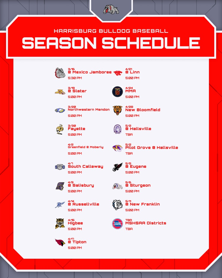 Check out the Harrisburg Bulldog Baseball schedule for the spring!!! #BulldawgPride