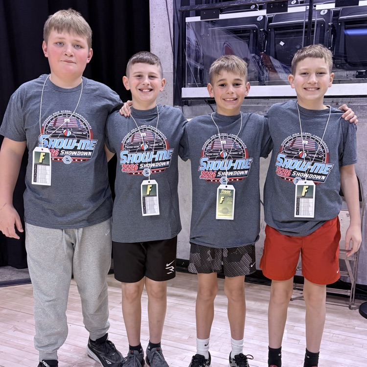 Harrisburg Bulldog students were ball boys today at Mizzou Arena for the MSHSAA Class 1-3 Boys semifinals. They are Jack Price, Wyatt Wilhite, Rhett Clatterbuck, & Carl Mueller #BulldawgPride