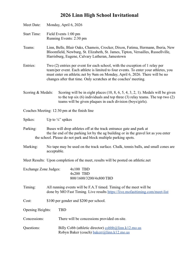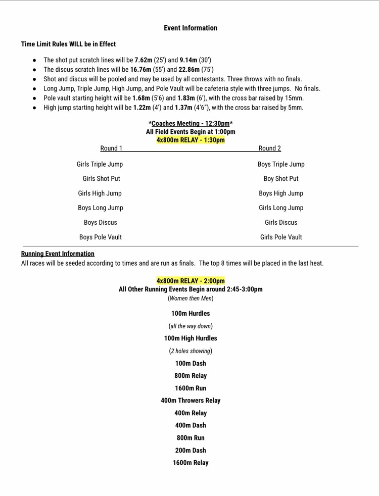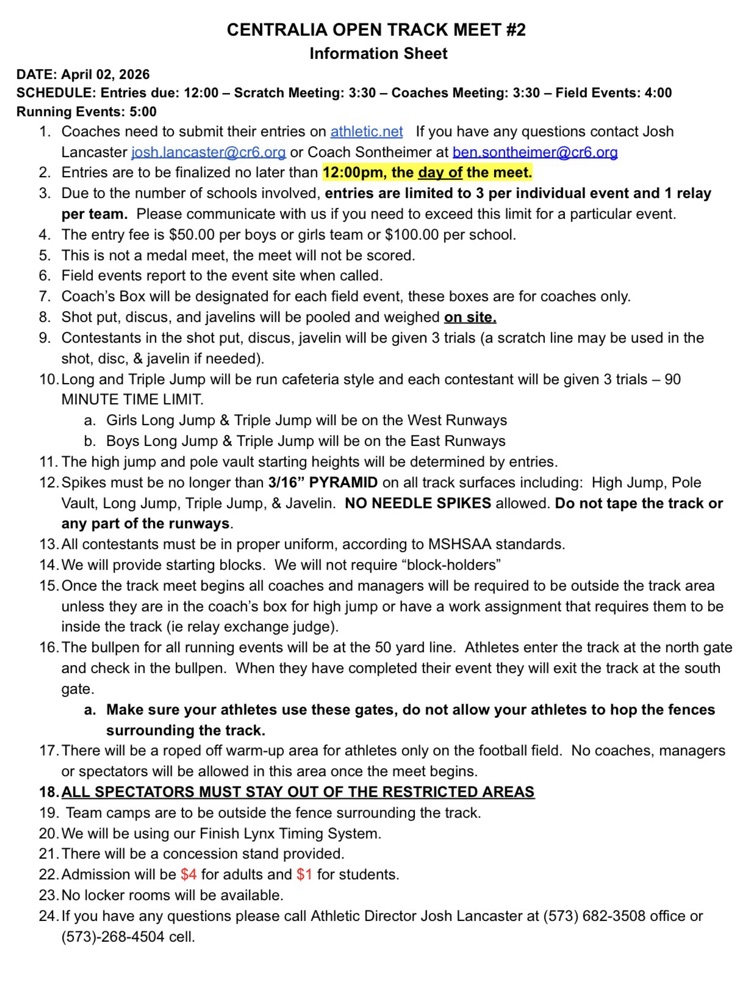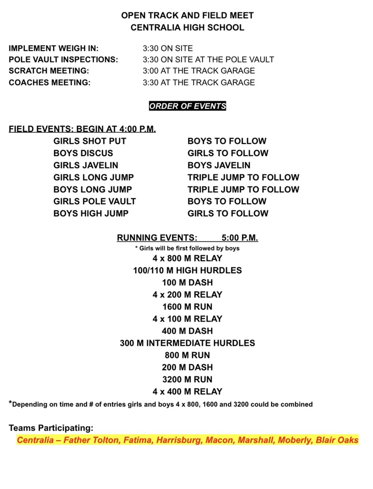Here is the information sheet for the Centralia Open for our Harrisburg Bulldog HS T&F teams. #BulldawgPride