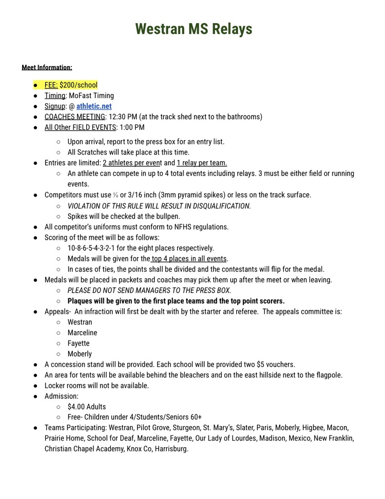 Here is the information sheet for the Macon Open today for our Harrisburg Bulldog MS T&F teams #BulldawgPride
