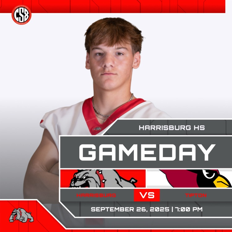 GAMEDAY!!! The Harrisburg Bulldogs host the Tipton Cardinals for a Week 5 Friday night Central State 8 matchup at 7:00 pm. Good luck to the Bulldogs!!! #BulldawgPride