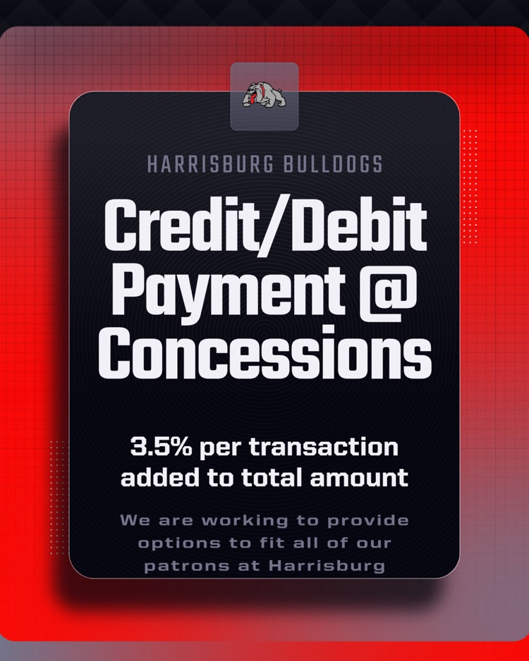 Harrisburg will now offer an option to pay by card when using our concession stands.