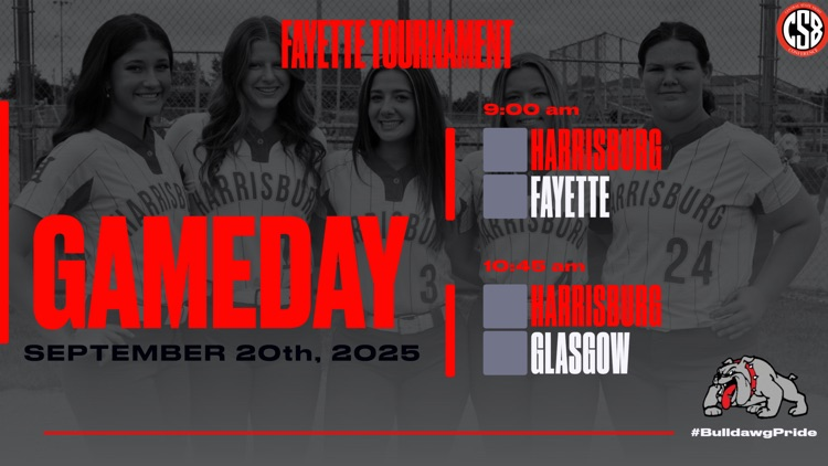 The Harrisburg Bulldog softball team will be playing in the Fayette Tournament tomorrow morning. Pool play begins at 9:00 am vs Fayette #BulldawgPride