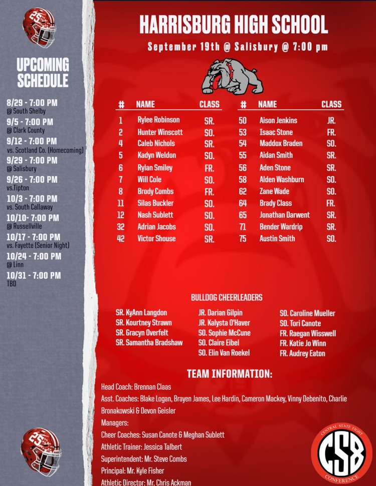 Our Harrisburg Bulldog cheerleaders will be leading our crowd and supporting our Bulldogs tonight on the sideline at Salisbury #BulldawgPride