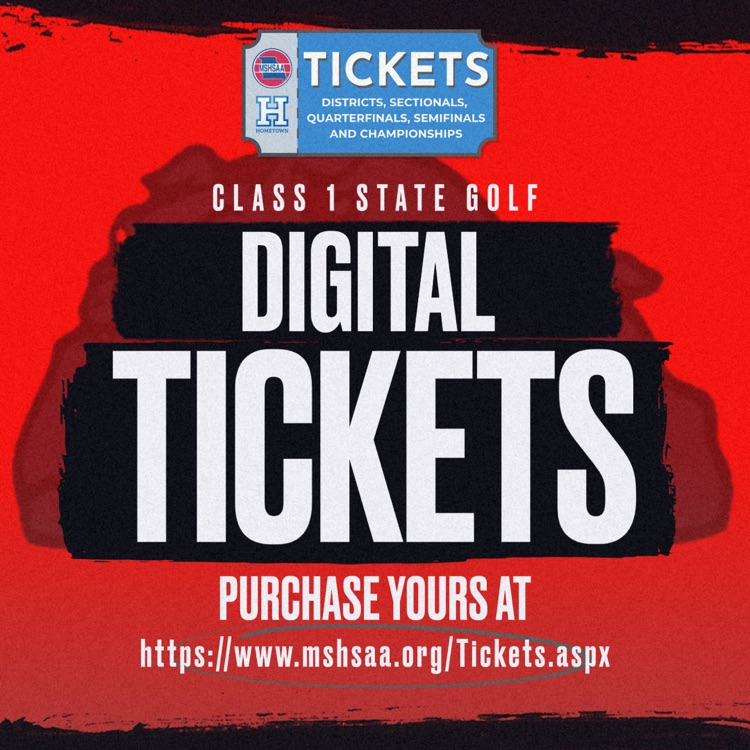Reminder for those planning to attend the Class 1 State Golf Tournament at Tanglewood GC in Fulton on Monday, October 20th & Tuesday, October 21st, you must purchase a digital ticket from MSHSAA.