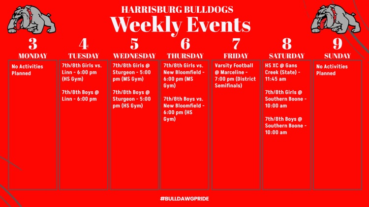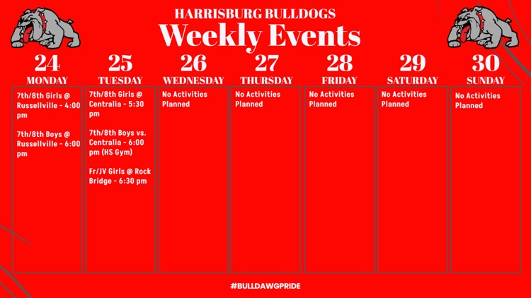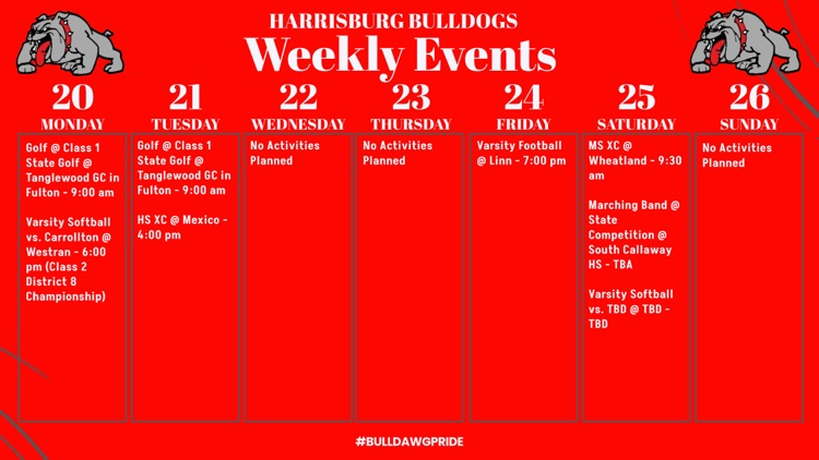 Check out the weekly events for our Bulldogs!!! #BulldawgPride