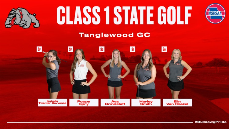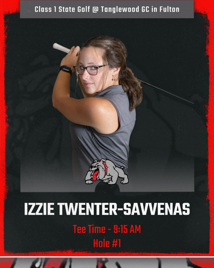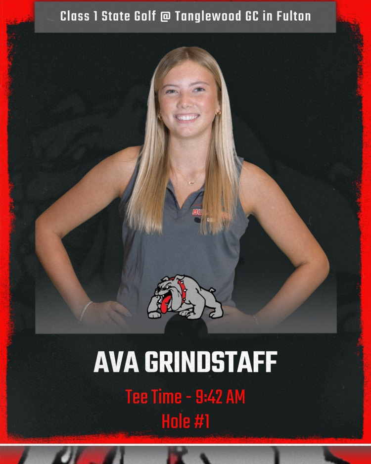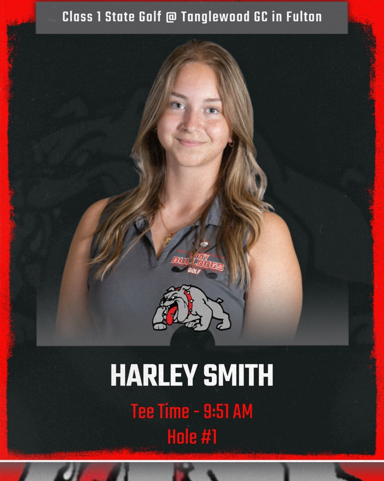 Check out the tee times for our Harrisburg Bulldogs tomorrow morning for the Class 1 State Golf Tournament at Tanglewood GC in Fulton. Good luck to Coach Jackie Wardrip, along with her staff, and the golfers tomorrow morning!!! #BulldawgPride