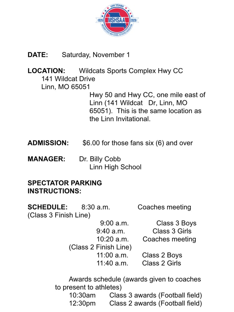 For those attending the Class 2 district races at Linn HS this morning, please see the information sheet and map for parking. #BulldawgPride