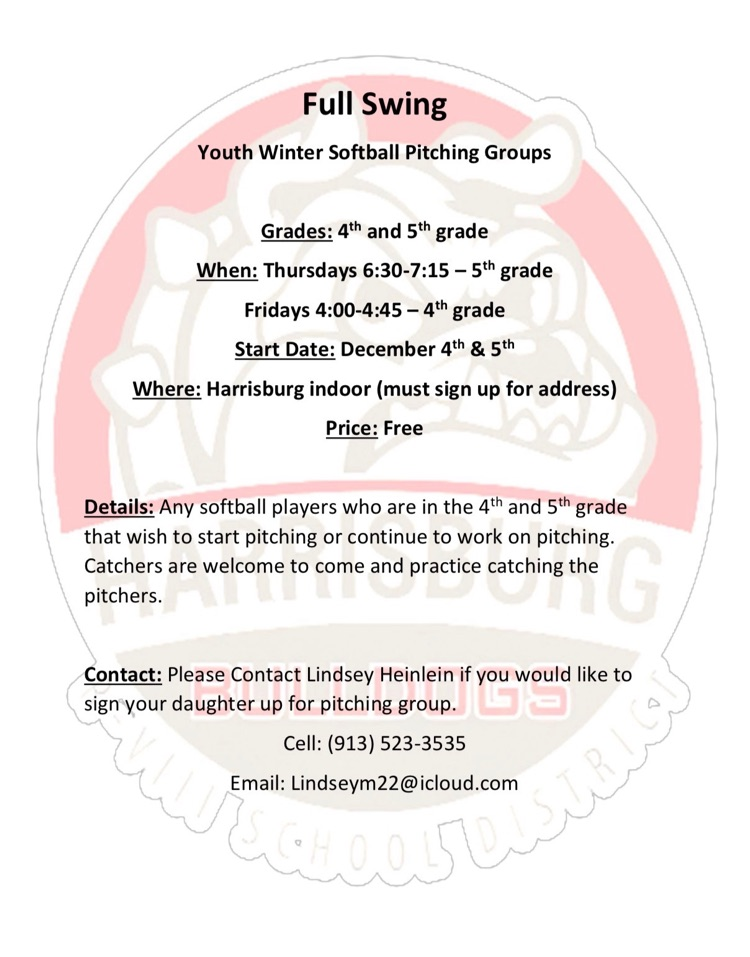 Lindsey Heinlein will be offering free pitching lessons for any 4th & 5th grade softball players.
