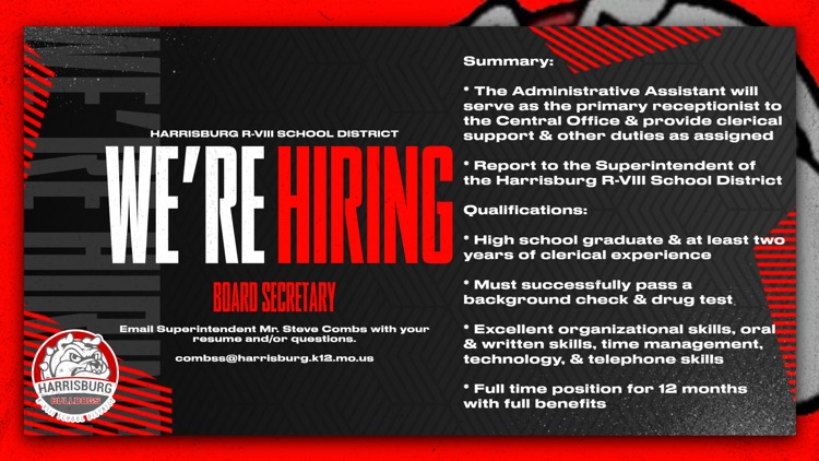 Harrisburg School District is hiring a Board Secretary (32 hrs/week, Tue–Fri)