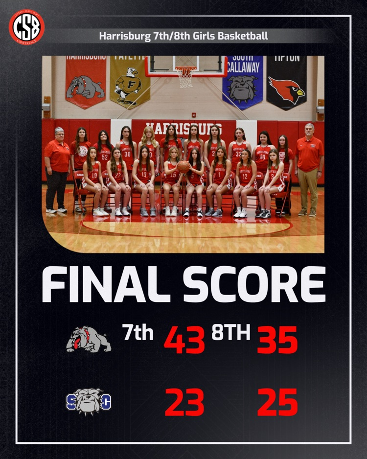 Congratulations to the Harrisburg 7th/8th girls basketball teams picking up two wins last night at South Callaway!!! #BulldawgPride