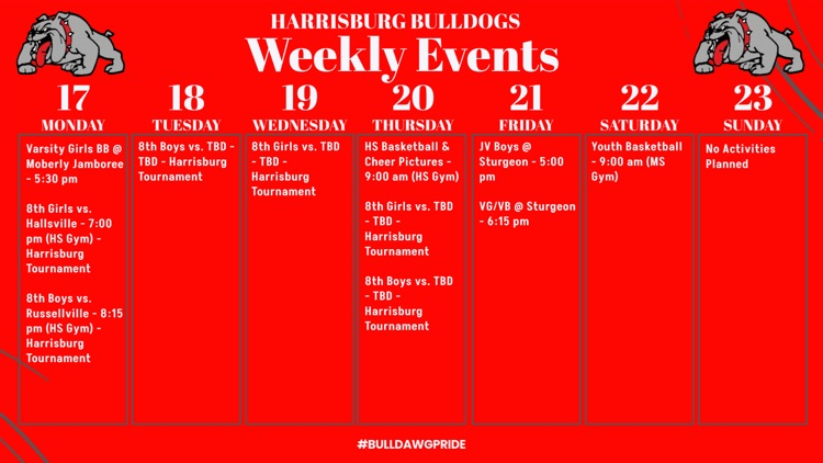 Check out the weekly events for the Harrisburg Bulldogs!!! #BulldawgPride