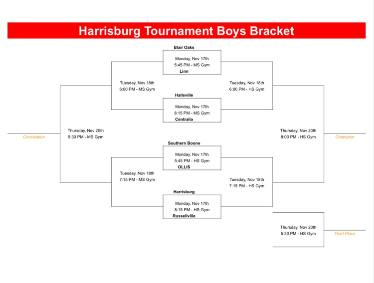 The Harrisburg 8th Grade Tournament begins tonight with 8 games being played starting at 4:30 pm in each gym.