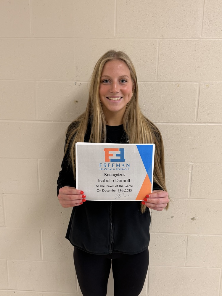 Congratulations to Jr. Isabelle DeMuth who was named the Freeman Financial Player of the Game by @NemoPressbox for her performance in a win over Hallsville!!! #BulldawgPride