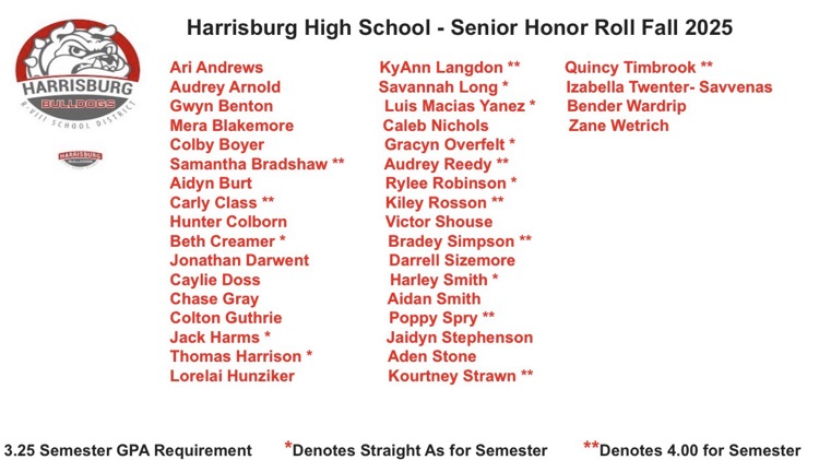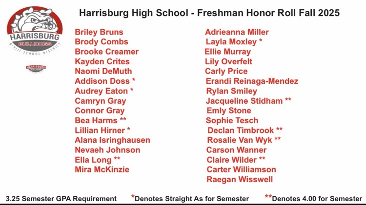 Congratulations to the following Harrisburg High School students who earned Honor Roll of the 1st semester!!! #BulldawgPride