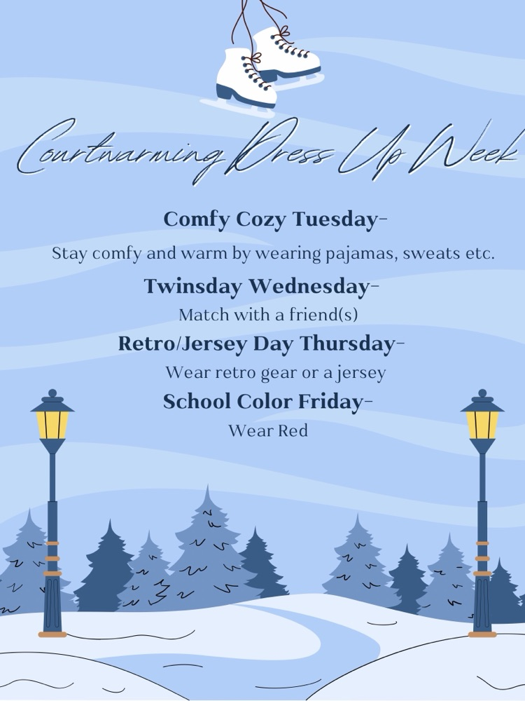Check out the 2026 Courtwarming Spirit Days for the high school this upcoming week. #BulldawgPride