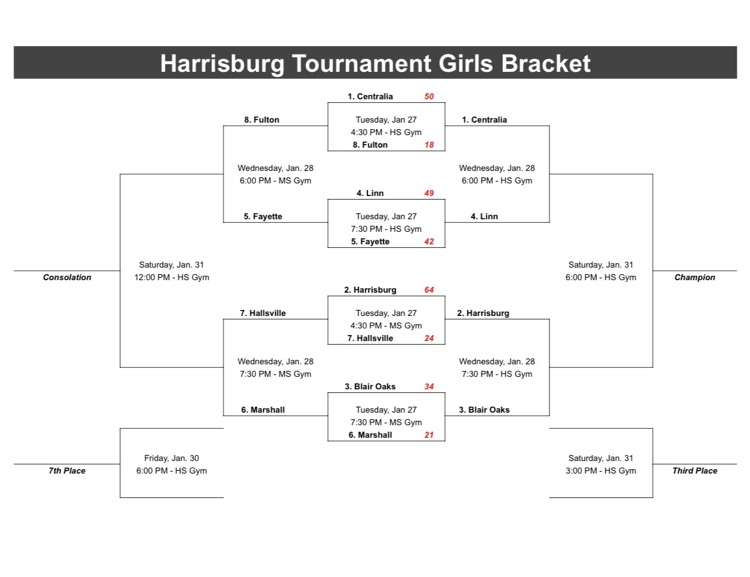 The Harrisburg JV Lady Bulldogs will be playing in the Centralia JV Girls Classic this week. Here is the bracket #BulldawgPride