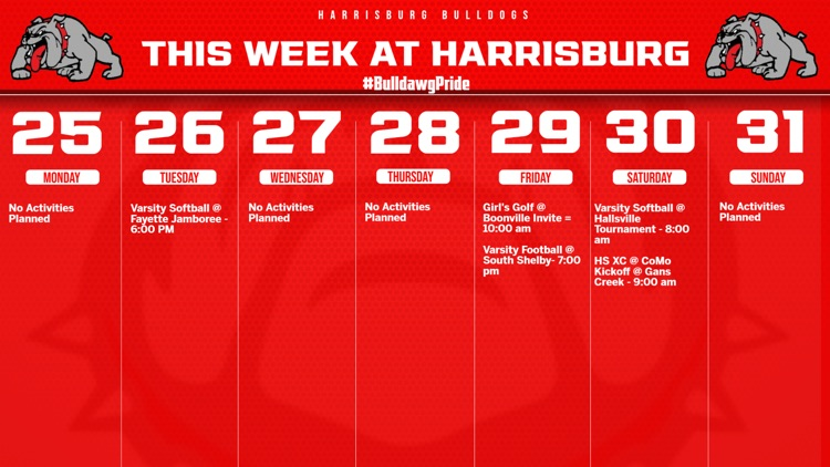 Check out the weekly events for our Bulldogs!!! #BulldawgPride