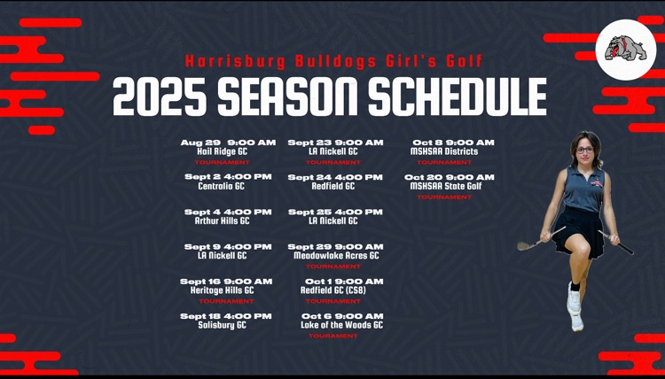 Check out the Harrisburg Bulldogs girl’s golf schedule. The Bulldogs open the season this Friday at the Boonville Par 3 Invite at 10:00 am #BulldawgPride