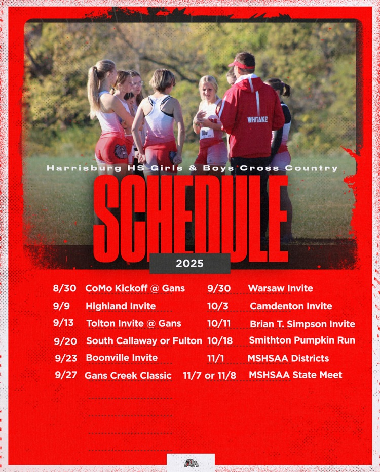 Check out the Harrisburg Bulldogs boy’s & girl’s cross country schedule. They open their season this Saturday at the CoMo Kickoff Classic at Gans Creek at 9:00 am #BulldawgPride