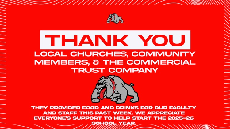 The Harrisburg R-VIII School District would like to thank our local churches, community members and the Commercial Trust Company for providing food and drinks for our faculty and staff for our back to school meetings!!! We appreciate the support they provide for our schools!!! #BulldawgPride