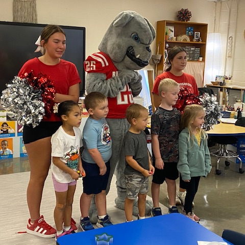 The Harrisburg Bulldog Cheerleaders and Spike visited classrooms this morning for Friday Night Lights!!! #BulldawgPride